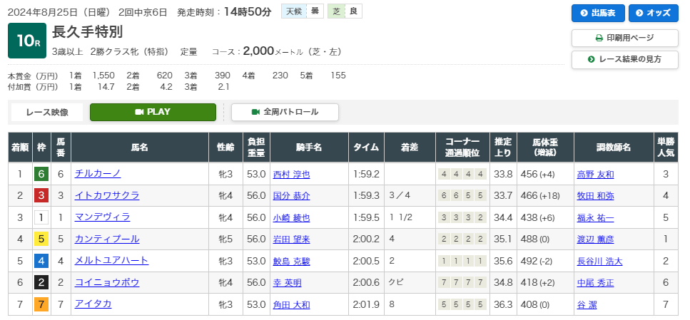 8月24日・中京5レース 2歳新馬 芝1600m