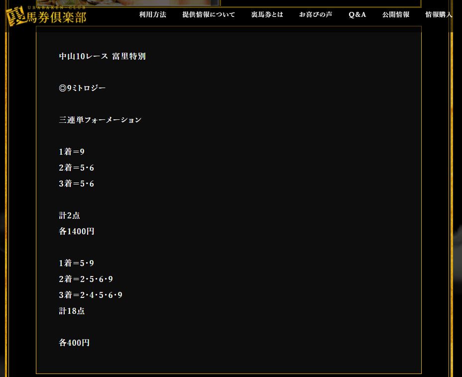ここは会員が負けを取り返そう!と、いう気持ちも汲まず、ただ買い目を提供しているだけだなと浅はかな考えと結果を見て感じました。