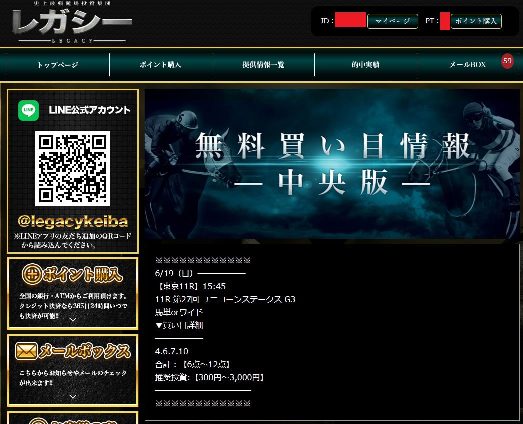 最強競馬投資集団と謳うなら『自信と誇り』をもって買い目を提供してほしいものだ、おそらく自社運営が厳しく他のサイトに誘導して泡銭を稼いでいるのであろう必死さが、6サイトも紹介している事から見て取れる。