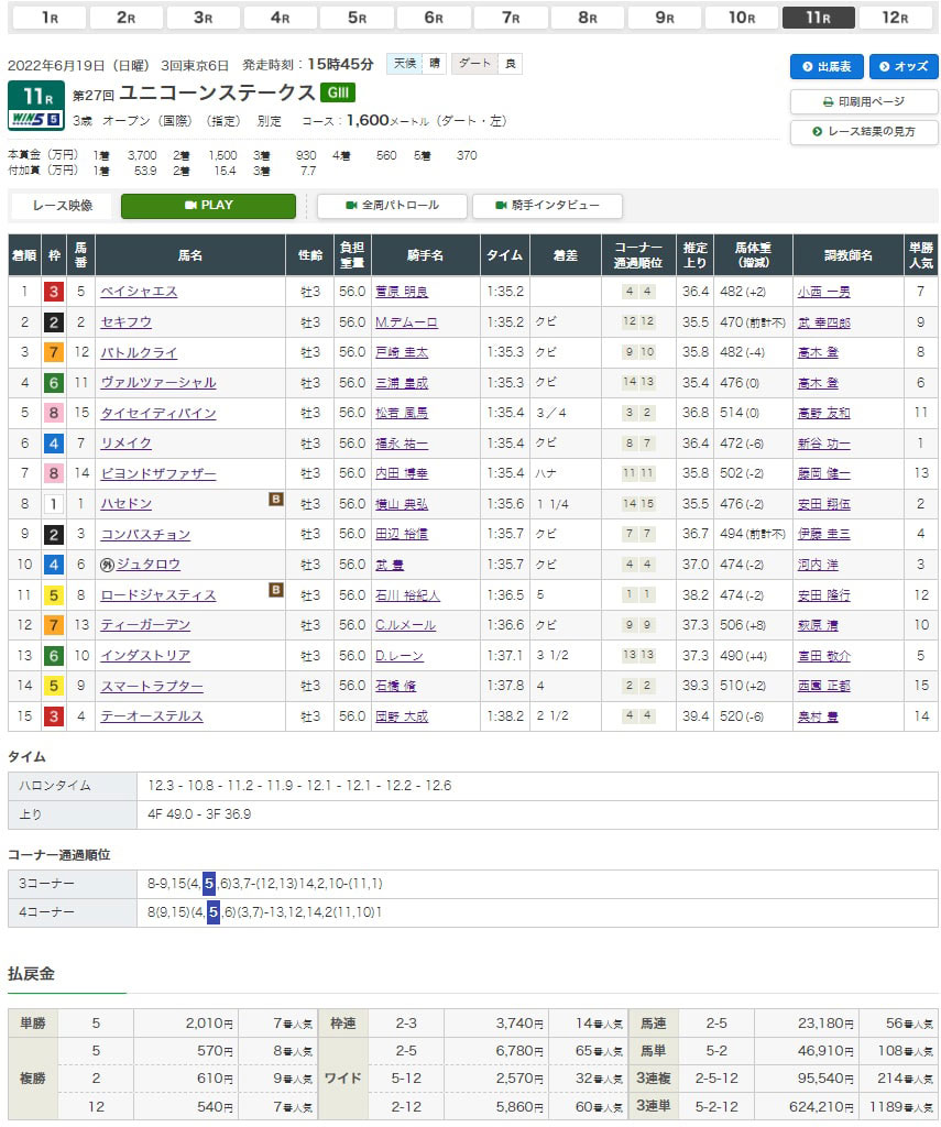 【検証レース:6/19[日] 東京11R ユニコーンS】