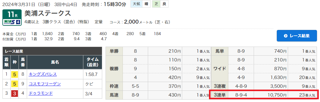 先週、3月31日(日)3月最後の競馬予想でご紹介したサイト内予想が大的中!