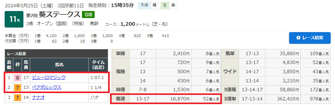 68.6倍もついていたので当たったらこれもまた大きかったですね。