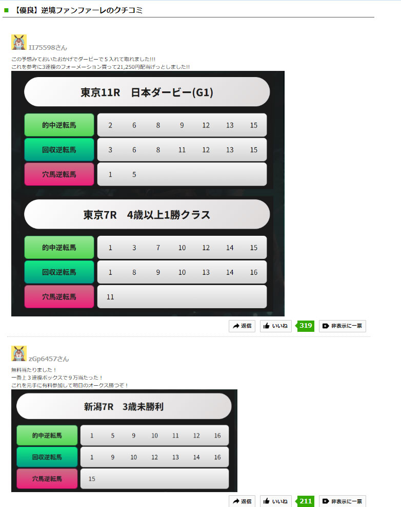 そしてみな高額な有料情報のものばかりで無料情報が当たっているかいないかの口コミは1件もありませんでした。