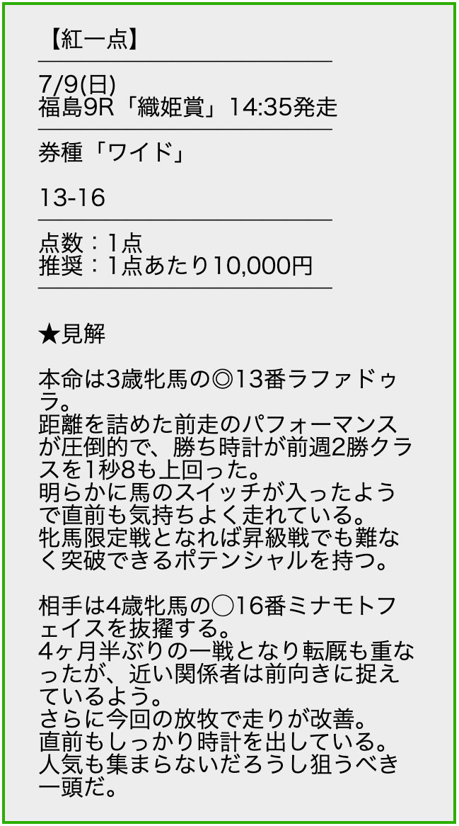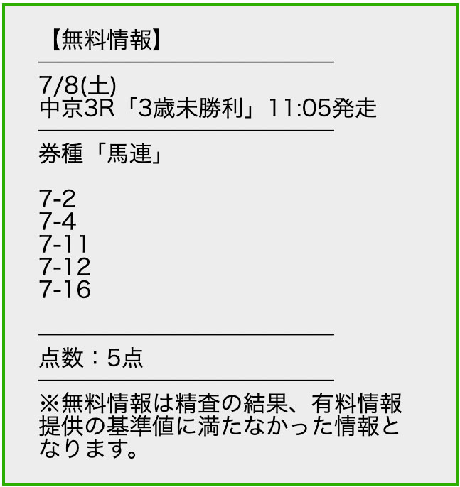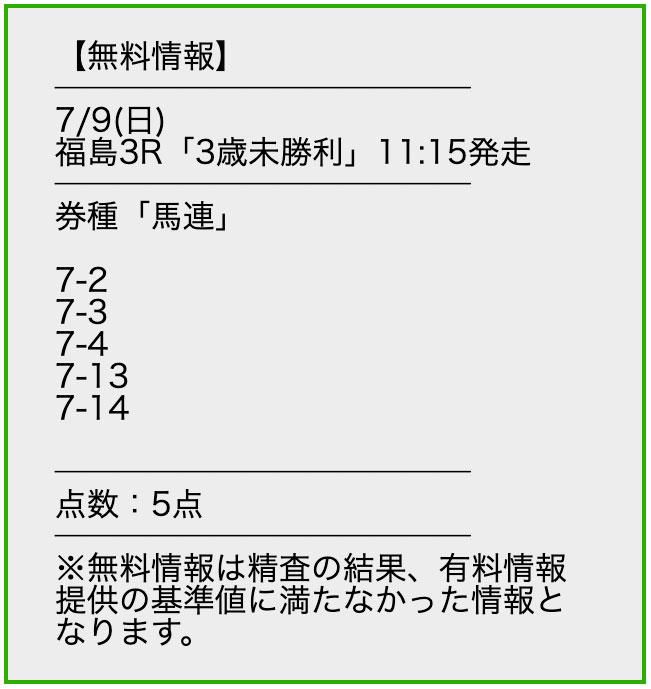 さすが夏競馬という穴馬が絡んだレースを1点勝負で高額払い戻しに成功もできてかなりコスパの良い情報に参加できてよかったです。