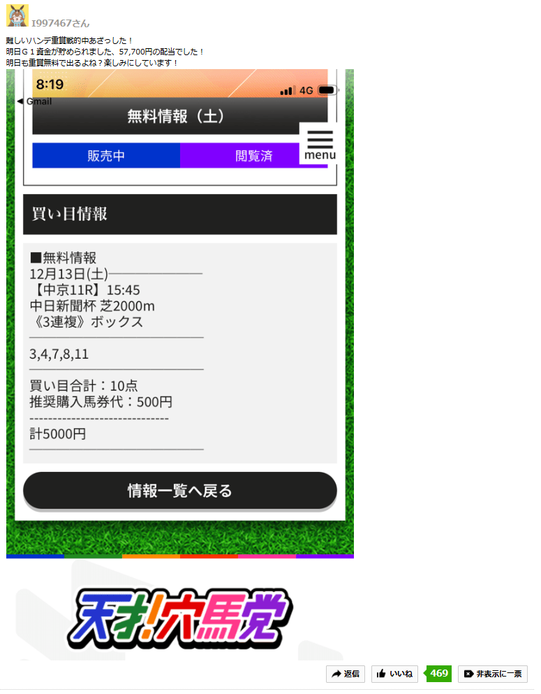 今週の土曜・日曜日も無料予想公開告知あり、事前登録を済ませておけば重賞的中予想が完全無料で買い目公開時にお知らせが届きます。