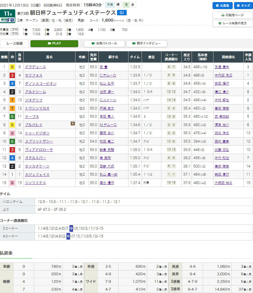 【検証レース:12/19 阪神11R朝日杯フューチュリティステークス】