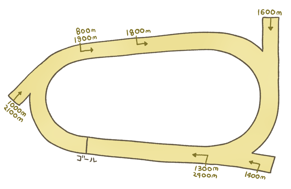 1~2コーナーのカーブはきつく、3~4コーナーのカーブは緩やかになっている。