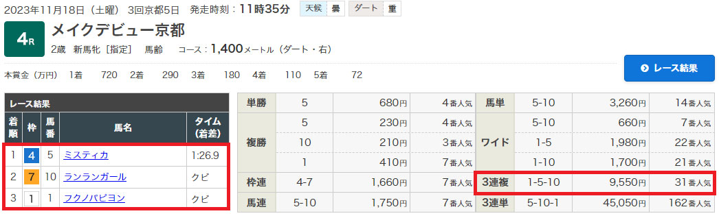 11/18(土)京都4Rの3連複フォーメーション25点