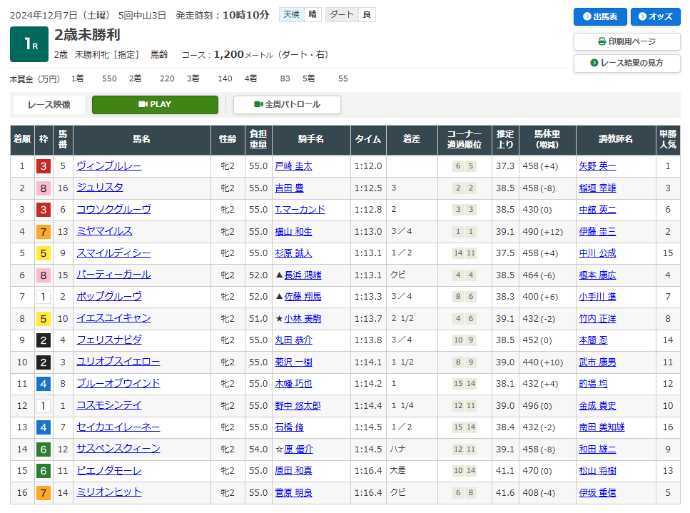 7日(土)朝一1発目のレースから公開された3馬券種全的中!