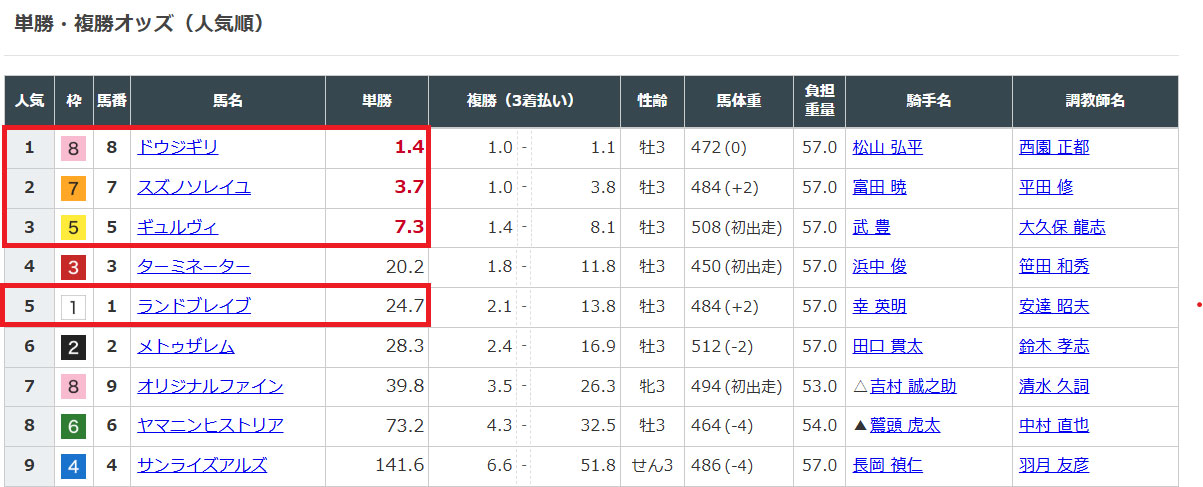 上位人気ではあるのですが、穴目の馬も選ばれているのでほっとしました(笑)