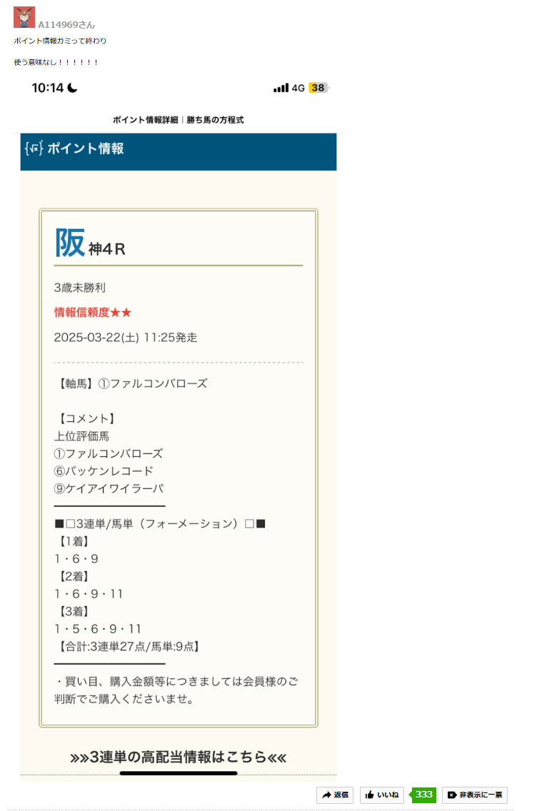 このようにポイント予想もトリガミだったように【悪評】が妥当でしょう。