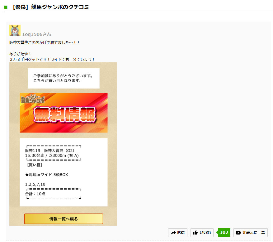 こちらから【競馬ジャンボ】の口コミページへ飛ぶことができますので、口コミのご確認をされてからぜひ登録へ進んでください。