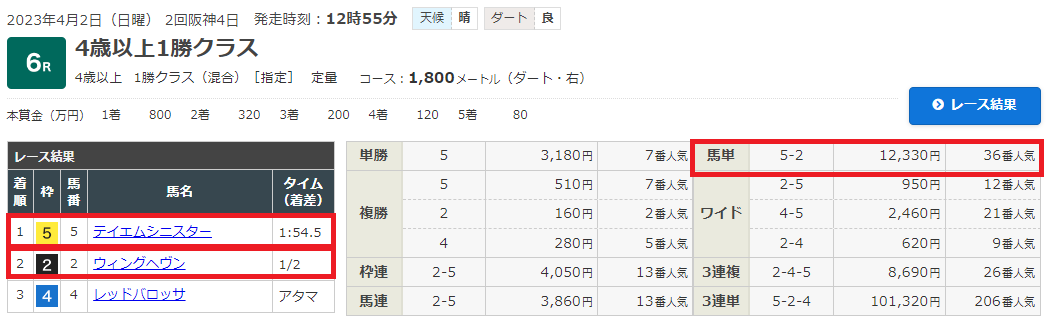 4月2日・阪神5レース 3歳1勝クラス 芝1600m