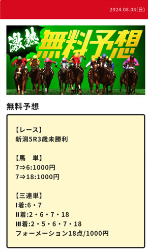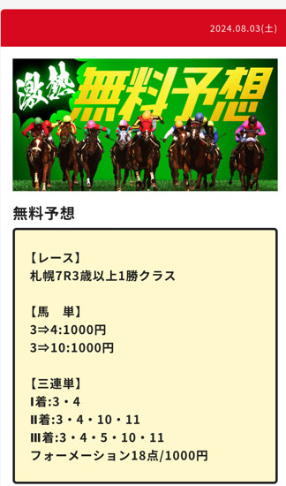 まずは8月3日(土)に公開された買い目から見ていきたいと思います。