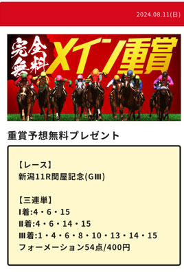 まずは重賞予想無料プレゼントで公開された情報を見ていきたいと思います。