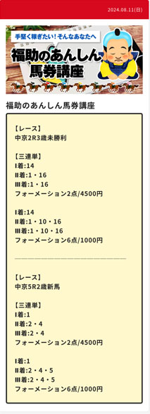 【大当たり競馬】の無料情報で2日連即的中でかなりいい金額的中したので、次の週の重賞無料情報と有料情報に参加してみることにしました。