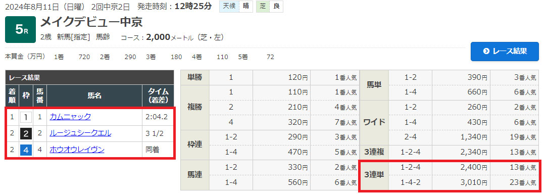 1-2-4、1-4-2で的中!!!同着で2通り的中しました!