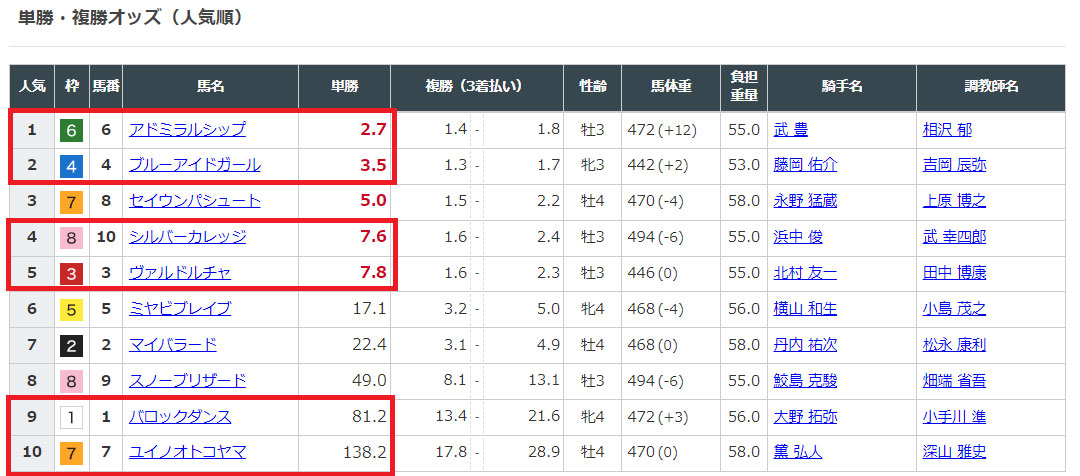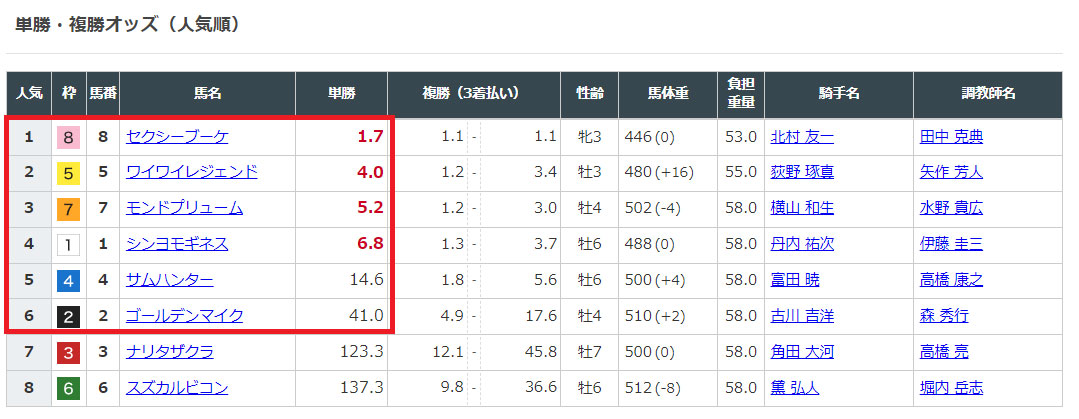 8頭立てで少頭数のレースになります。8頭立てで6頭選んでいるのでほぼ馬券に買っていることになりますね。