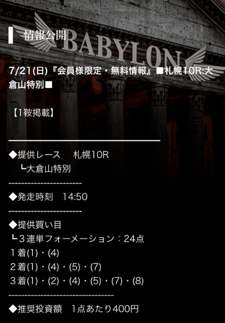 まずは土曜日に公開された買い目から見ていきたいと思います。