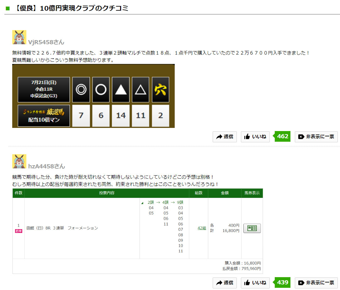 ぜひこちらから【10億円実現俱楽部】の口コミに飛べますのでその高精度の予想を見ていただければと思います。