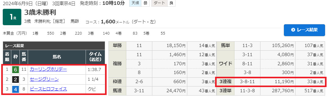 11-3-10で的中!!!有料情報1レース目的中しました!!