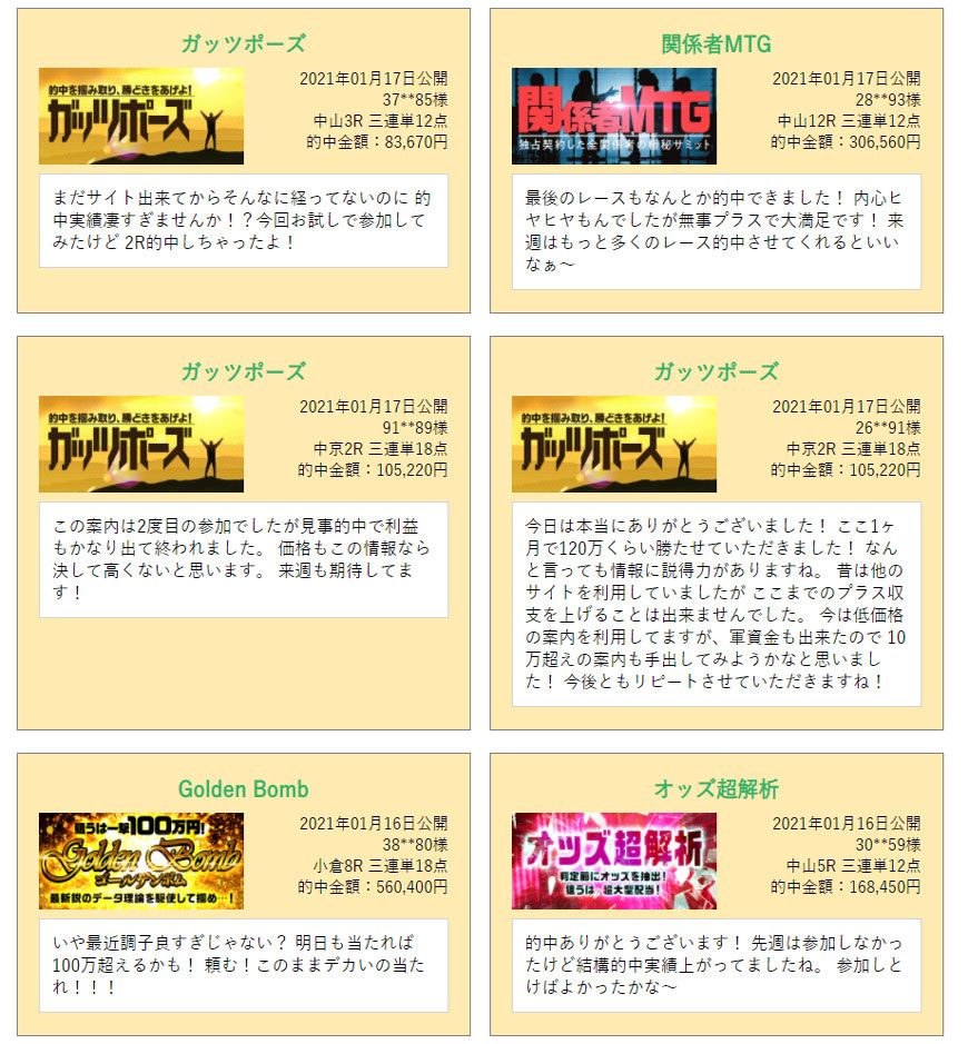 その前に、土曜日分に公開された無料買い目情報の検証結果から先にご確認下さい。