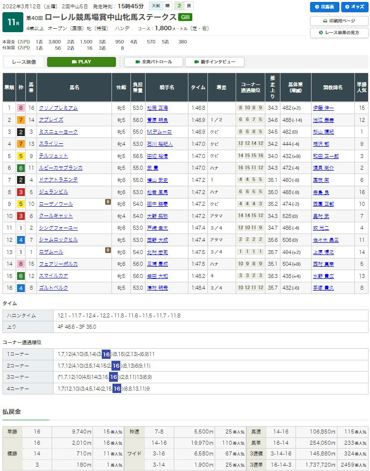 【検証レース:3/12 中山11R ローレル競馬場賞中山牝馬ステークス】