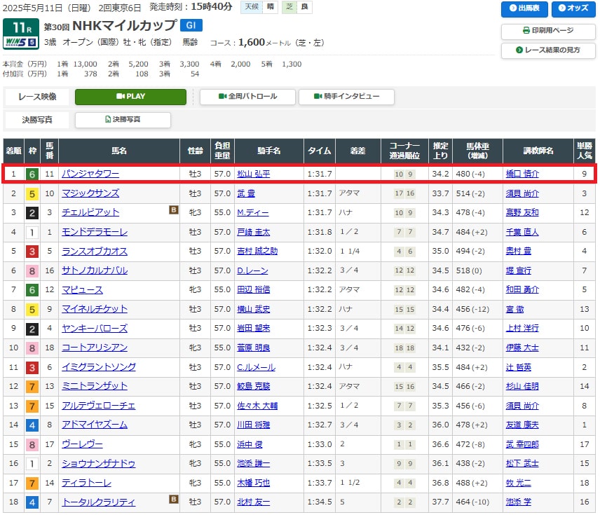 先週末のNHKマイルカップの結果はいかがだったでしょうか?