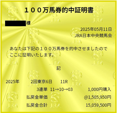 日ごろから数多くの的中実績を残していますが、今回の的中はその中でも類を見ない凄い的中となっています。