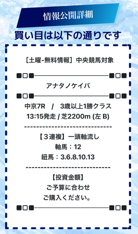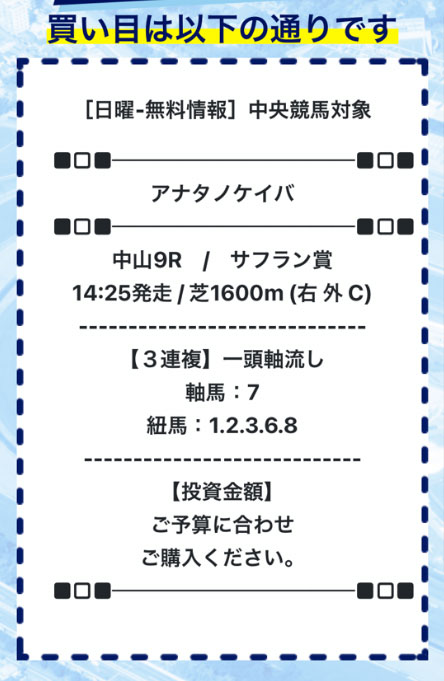 【アナタノケイバ】は経験豊富な最強馬券師がいて24時間情報を精査しているようですね。