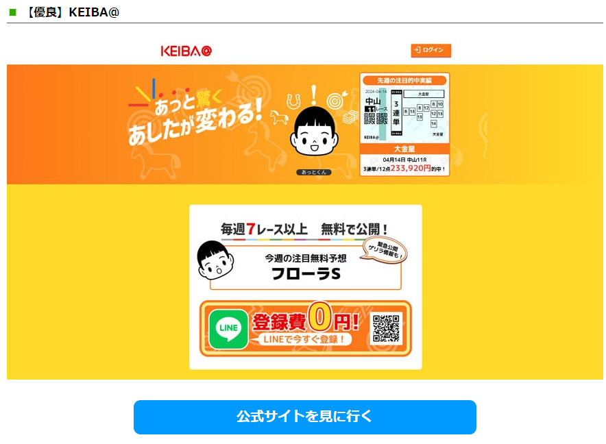 ぜひこちらから【KEIBA@】の口コミページへ飛ぶことができますので、口コミを見てご登録へ進んでください。