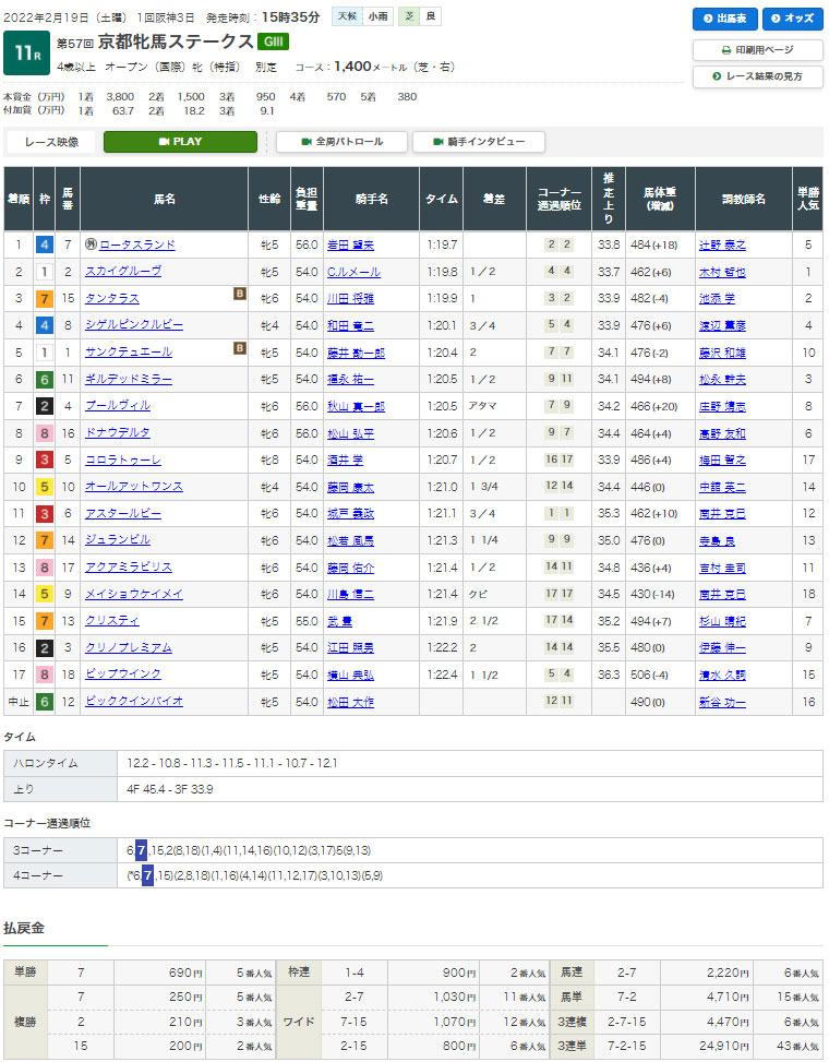 【検証レース:2/19 阪神11R GⅢ京都牝馬ステークス】