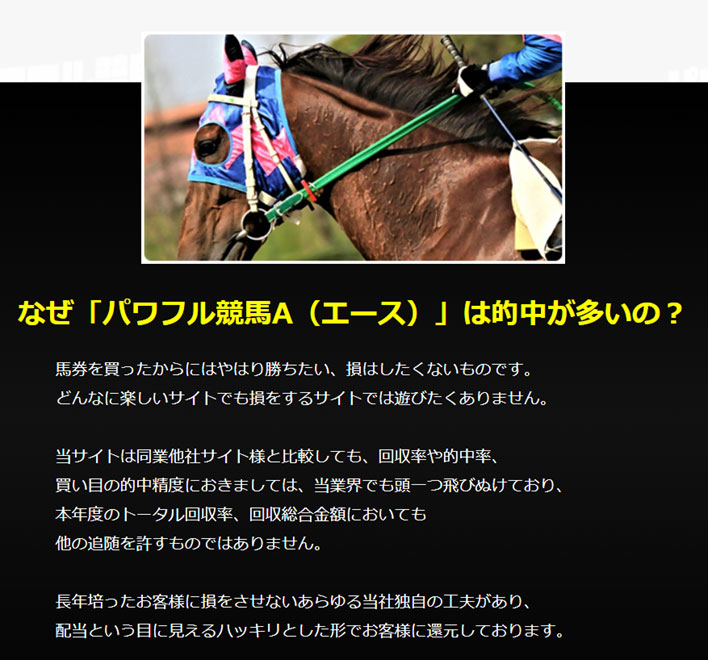 サイトを見てみると【パワフル競馬A】は的中が多いらしく、競馬予想サイトの業界でも頭一つ飛びぬけているようです。