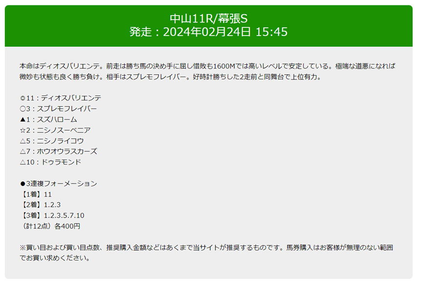 (とても細かいことですが3連複の予想なのに1頭目、2頭目、3頭目ではなく1着、2着、3着となっているのが気になりますね)