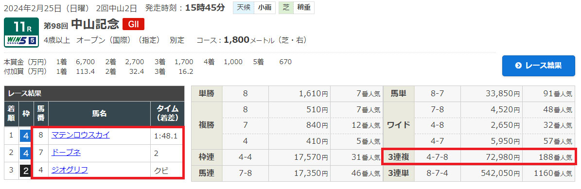やはり3連複でも良い金額がついたので当てたかったですね。