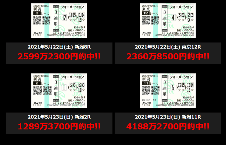情報料金500円、馬券代2レースで7千円、回収率がえぐい数値!!