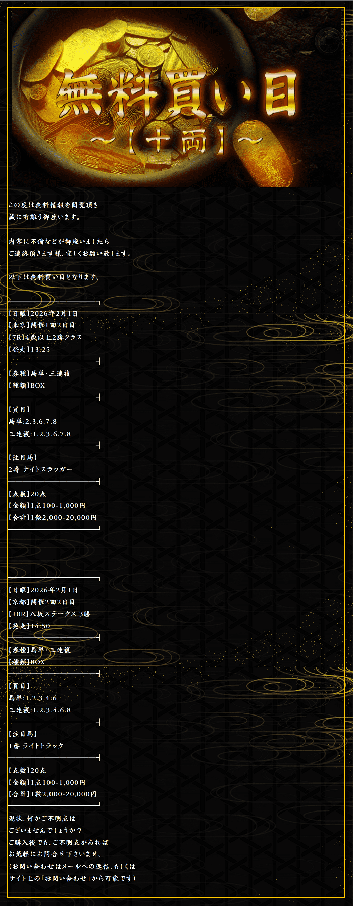 無料情報2鞍公開されていて、その前のレース馬単60.4倍的中していました。