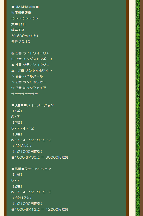 無料予想3連単②→⑧→⑨的中で万馬券360.9倍的中!
