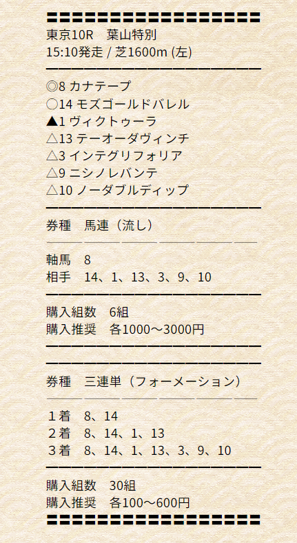 14-8-13で三連単当たりで41,100円もらいました^^