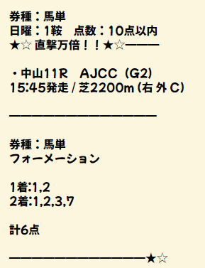 内の馬で予想してくれたけど悲しいことに外の馬で決まったわ笑