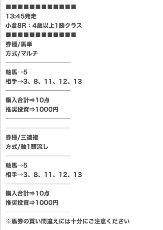 13が抜けてて万馬券取れなかったよ~( ;∀;)