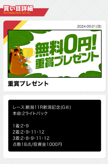 この予想のせいではずしたわよ新潟記念 もう買いません!( ;∀;)