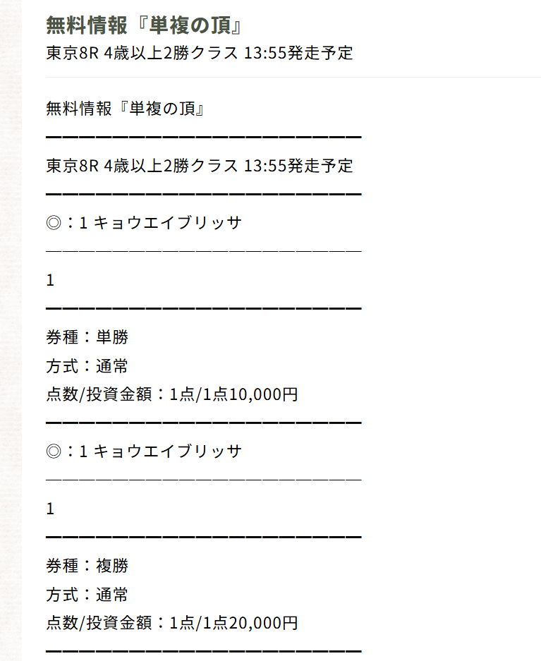 1番人気しか買わないやんここ