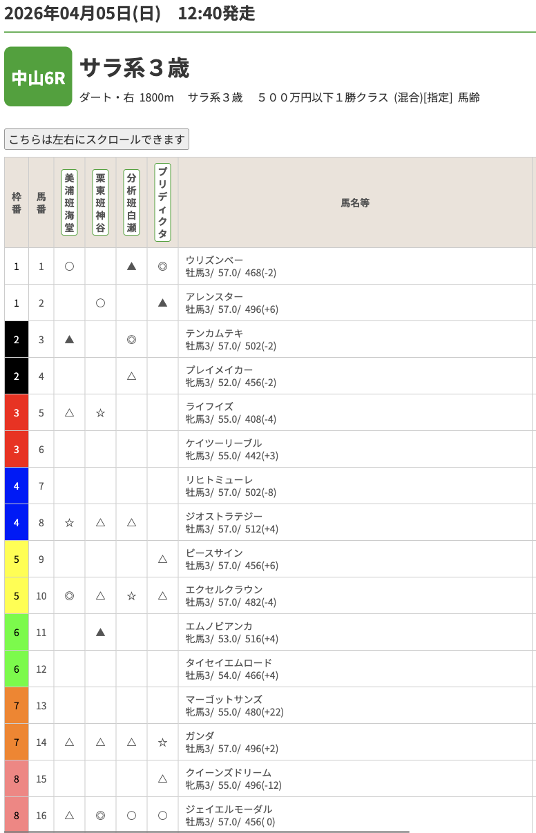 印が多いとこを選択して無料予想の印で3連単400倍的中!