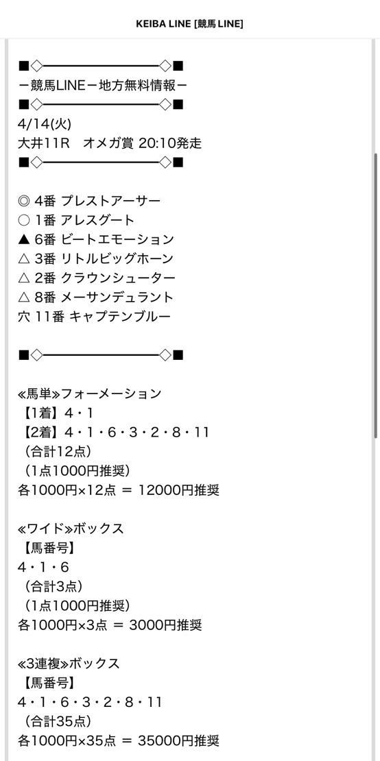 あんまり地方競馬って買う機会ないけど、重賞&買い目出てるところ探して競馬LINEが無料予想出してたから買い目を参考に馬券買ったら馬単&3連複ダブル的中貰えました